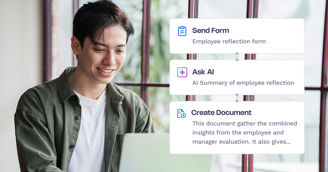 Pick what happens next. Send a personalised email, notify IT, create tasks in Asana, update records, or generate documents. You can stack multiple actions to suit your process.